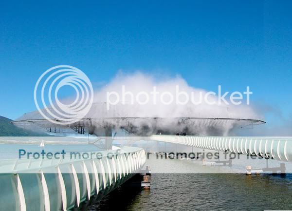 Pavilion sensasional ini didesain oleh arsitek-arsitek New York, Diller + Scofidio, dulunya merupakan bintang di acara Switzerland’s Expo 02. Layaknya ayunan kucing dari besi tensil, dengan tinggi 20 meter dan panjang 100 meter, mengumpul di ujung dermaga yang terbuat dari baja dan kaca di atas danau Neutchatel. Di dalamnya, 30 ribu water jet menciptakan kabut awan yang tidak pernah berhenti.